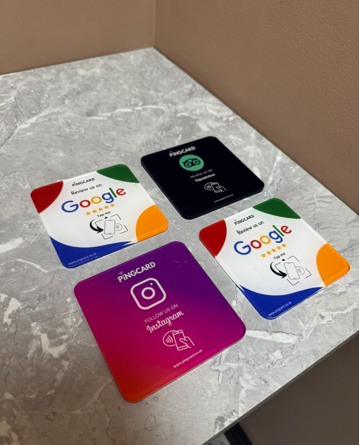 Never miss a Google Review again! Improve your reviews and online ranking with a Google Review Plate. Also improve your social media with an Instagram Plate or a Facebook Card!
